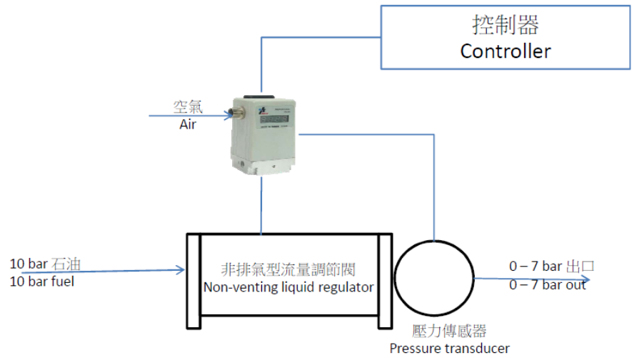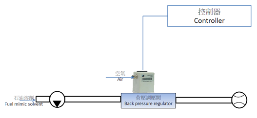 Un banco di prova della contropressione della pompa del carburante può essere costruito con i componenti del regolatore di pressione proporzionale elettronico QKL (convertitore I/P) per gestire il test di una varietà di dimensioni di pompe del carburante. QKL combina un regolatore di contropressione con un regolatore di pressione che controlla la pressione a monte in un test della pompa del carburante. Un monitor di flusso misura il flusso a valle e invia un segnale ai controlli, che inviano un segnale di comando al regolatore di pressione proporzionale elettronico QKL (convertitore I/P) per aumentare o diminuire la pressione nel carburante per soddisfare i requisiti specifici del test.