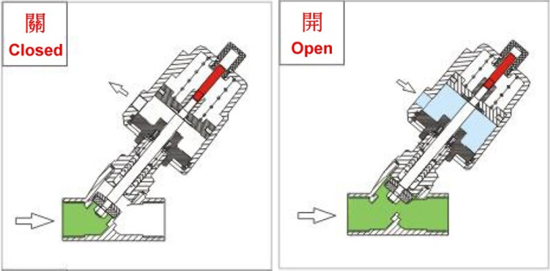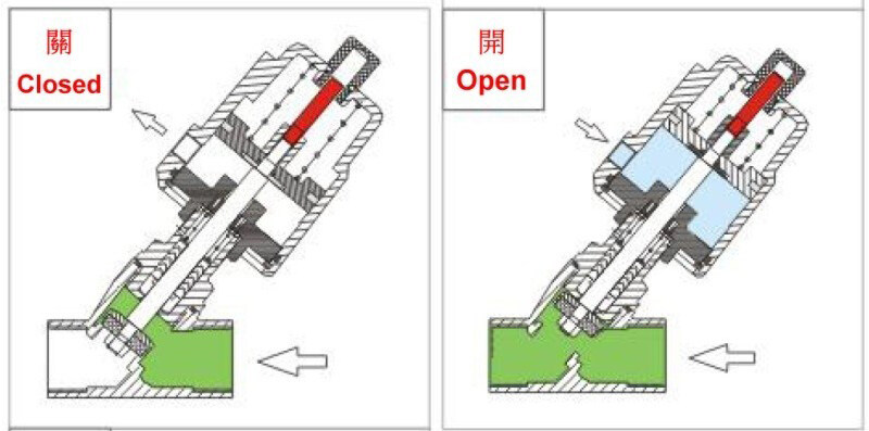 Ad azione singola, normalmente chiuso (NC) - Entrare sotto la sede (NO martello ad acqua)
