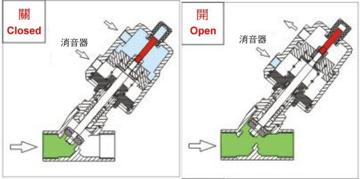 Adatta per una richiesta di valvola aperta per lungo tempo; evita il colpo d'ariete. Togliendo il silenziatore, la valvola può essere trasformata in un tipo a doppio effetto-NO.