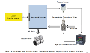 MOCVD'nin çalışma basıncı aralığında, genellikle reaksiyon odasındaki çalışma basıncının doğru bir şekilde kontrol edilebilmesi ve belirli bir aralıktaki herhangi bir ayar noktasında sabit tutulabilmesi gerekir. Düşük basınç ve yüksek basıncın farklı basınç aralıklarının hassas kontrolünü karşılamak için, önerilen basınç kontrol şeması, orijinal aşağı akış kontrol yöntemine bir yukarı akış kontrol yöntemi eklemektir. Vakum basıncı kontrol sisteminin yapısı Şekil 2'de gösterilmiştir ve aşağıdaki gibidir:
