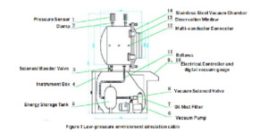Radyosondayı kalibre etmek için önemli yöntemlerden biri, düşük basınçlı ortam simülasyon odasını zeminde test etmektir. Kullanılan düşük basınçlı ortam simülasyon kabininin yapısı Şekil 1'de gösterilmektedir.