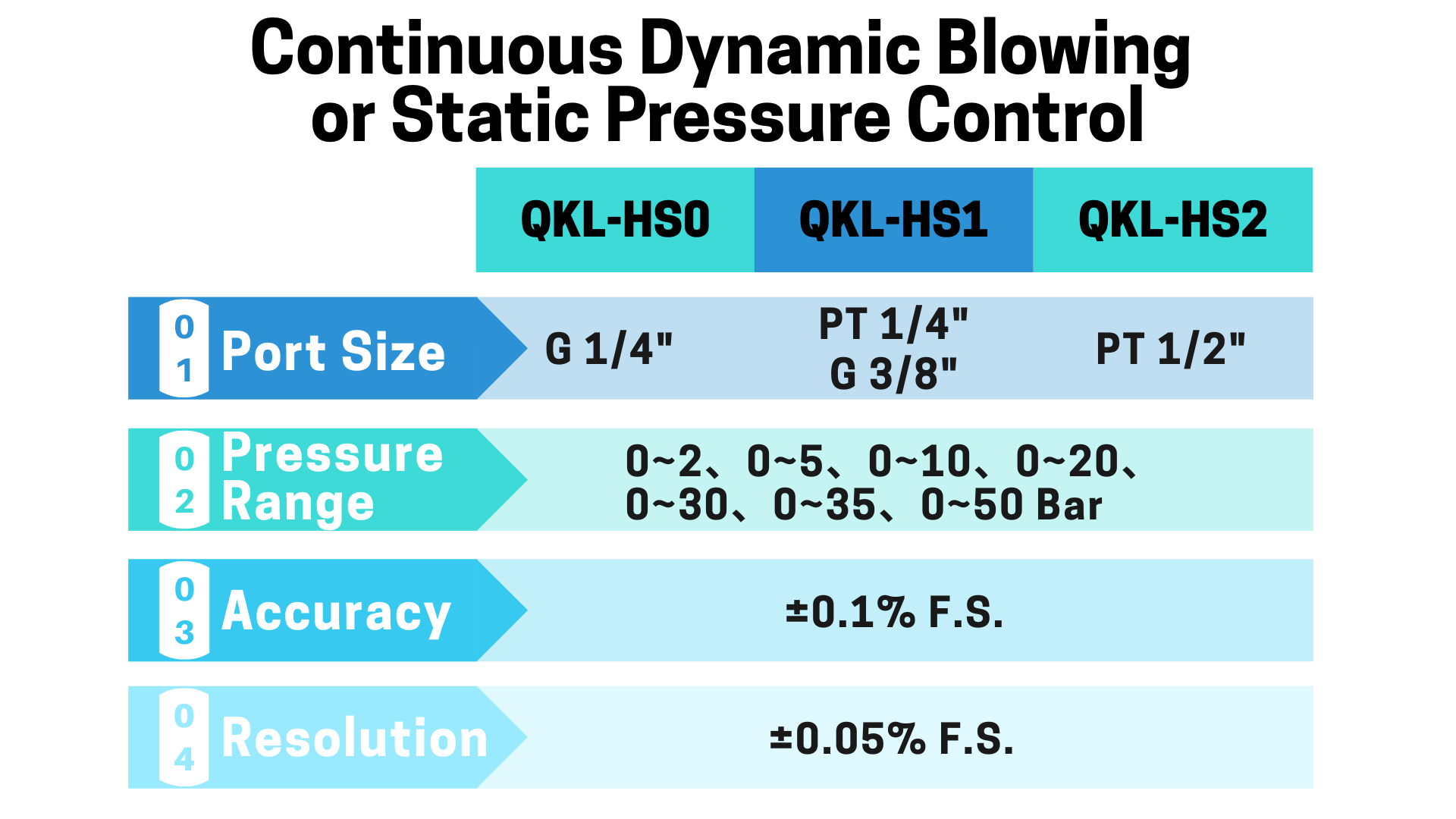 QKL-HS 시리즈는 3방향 전자식 압력 조절기입니다. 이는 비례 솔레노이드, 압력 변환기, 지능형 전자 장치 및 세련된 스풀로 구성됩니다. 높은 유속, 매우 빠른 압력 전환 시간, 높은 정확도, 산소 및 수소 가스와 호환되는 것이 특징입니다. 강력한 사내 소프트웨어를 사용하면 제어 매개변수를 사용자 정의하여 사용자가 고유한 압력 프로필을 구축할 수 있습니다. 아날로그 및 디지털 명령 신호로 사용할 수 있습니다.